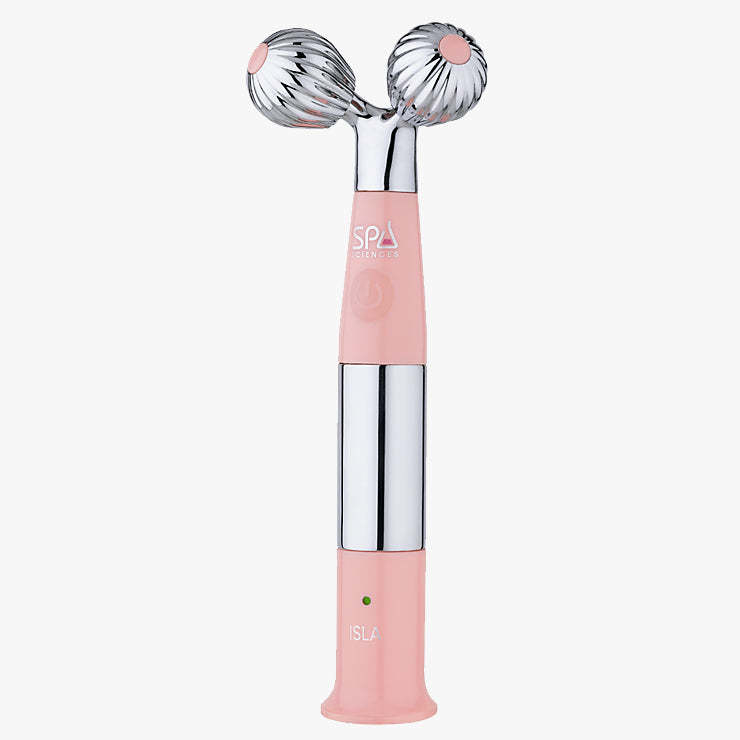 The ISLA™ massager lifts and contours the skin, relieves muscle tension, and offers optional heat and ice treatments for a truly customized experience. Its detachable stainless-steel globes help reduce puffiness and enhance your natural glow.